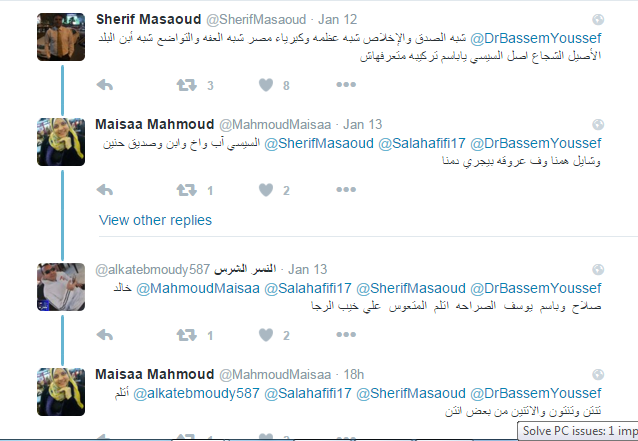 تفاعل النشطاء، على مواقع التواصل الاجتماعي، مع السجال الدائر بين الإعلامي المصري الساخر باسم يوسف، والصحفي خالد صلاح، على “تويتر”، الذي بدأ بالحديث عن مجلس النواب ثم تحول للحديث عن عبدالفتاح السيسي.