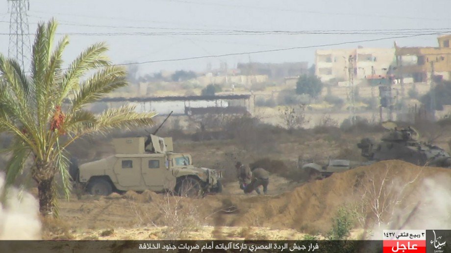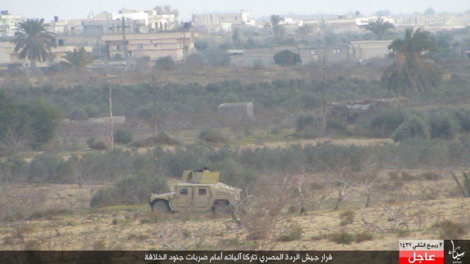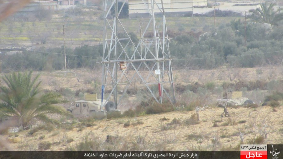 بالصور.. تنظيم الدولة ينشر صورا لهجومه على الجيش المصري وفرار الجنود