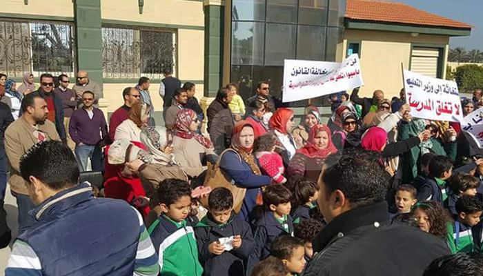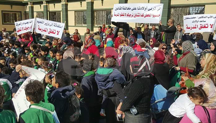 بالصور.. احتجاج أولياء أمور مدرسة بالبحيرة بعد قرار غلقها