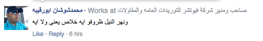 وقال محمد شومان أبو رقيبة: “ونهر النيل ظروفه إيه خلاص يعني ولا إيه”.
