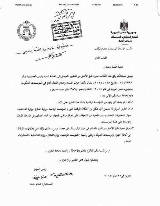 ومن جانبه، نشر الباحث التاريخي، محمد إلهامي، عبر “فيس بوك”، وثيقة رسمية تظهر “الزلزال” الكبير الذي أحدثه الرئيس محمد مرسي، في عمل الجهاز المركزي للمحاسبات، وهو ما يفسر الهجوم من جهة مؤسسات الانقلاب ضد المستشار هشام جنينة.
