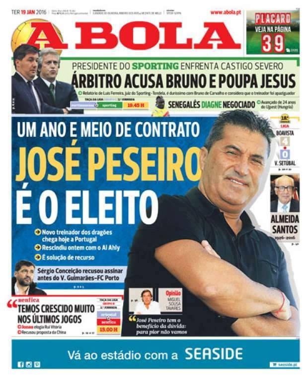 وعلى سياق متصل، عنونت صحيفة “أبولا” البرتغالية: “بيسيرو.. المختار في الإشارة إلى اختيار إدارة نادي بورتو له لتولي تدريب فريق كرة القدم”.