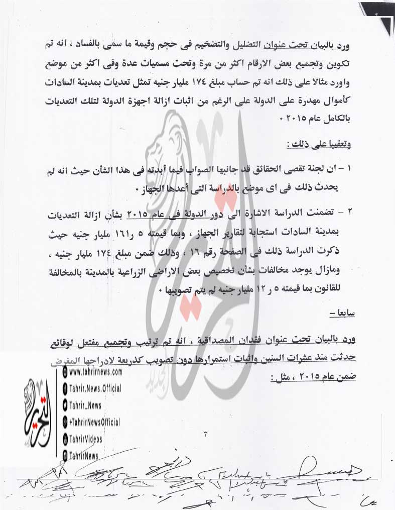 أعد الجهاز المركزي للمحاسبات ردا على تقرير لجنة تقصي حقائق السيسي، التي اتهمت المستشار هشام جنينة رئيس الجهاز المركزي للمحاسبات بالتضليل، لإصداره تصريحات عن حجم الفساد في مصر.