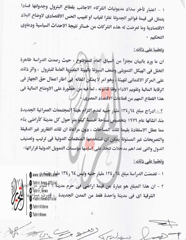وذكر “المركزي للمحاسبات” أنه ورد له من وزارة التخطيط، دراسة عن تحليل تكاليف الفساد في مصر، حددت هذه التكلفة بنحو 257.7 مليار جنيه سنويا، وأن وزير التخطيط الدكتور أشرف العربي طالب الجهاز بتدقيق تلك الدراسة، وبعدها تمت مخاطبة الإدارات المعنية به، وتم إطلاعهم على الدراسة المذكورة، وانتهى رأي الجهاز إلى عدم دقة ما ورد فيها.