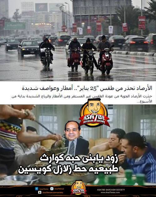 سخر عدد من رواد مواقع التواصل الاجتماعي من تصريحات هيئة الأرصاد الجوية بأن يوم 25 يناير سوف يشهد عواصف وهبوط في درجات الحرارة ، مبررين سخريتهم أن هذه التحذيرات والبيانات تصدر قبل أي احتفالية ثورية، من الاحتفال بثورة يناير إلى أحداث 30 يونيو ، مرورا  بذكرى فض اعتصامي رابعة والنهضة.