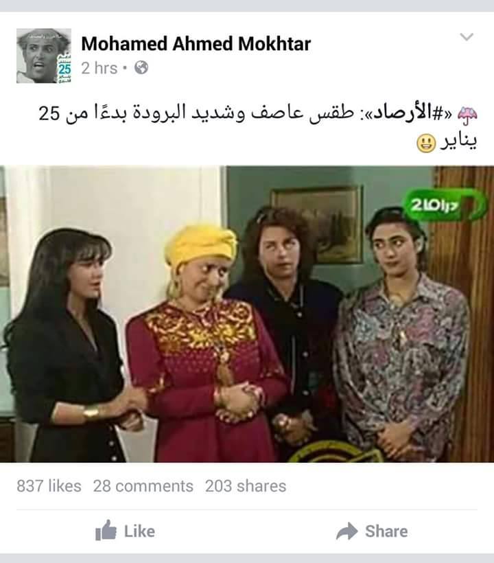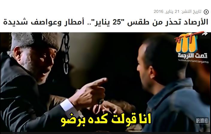 سخر عدد من رواد مواقع التواصل الاجتماعي من تصريحات هيئة الأرصاد الجوية بأن يوم 25 يناير سوف يشهد عواصف وهبوط في درجات الحرارة ، مبررين سخريتهم أن هذه التحذيرات والبيانات تصدر قبل أي احتفالية ثورية.