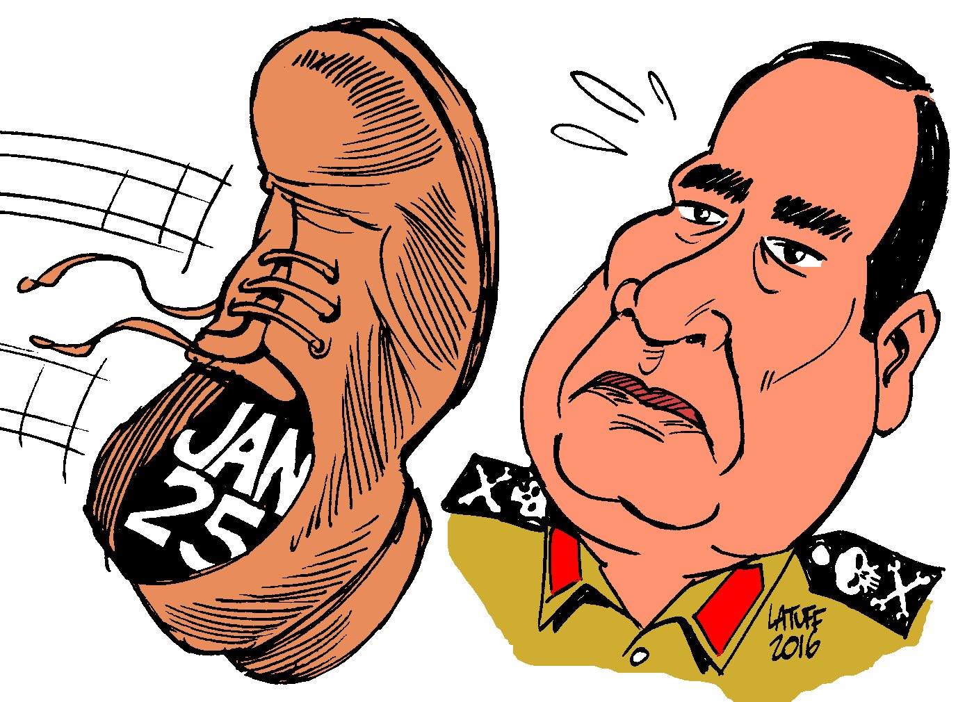 ونشر الرسام العالمي الساخر كارلوس لاتوف هذا الرسم ساخرا من السيسي فى ذكرى الثورة: