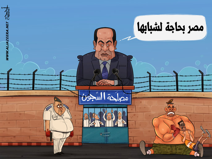 أما موقع “الجزيرة دوت نت” فسخر من السيسي في ذكرى ثورة يناير بهذا الرسم: