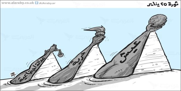 ونشر موقع “العربي الجديد”هذا الرسم معبرا عن مطالب الثورة في ذكراها الخامسة: