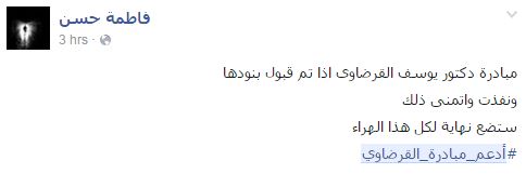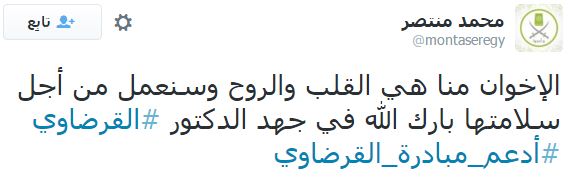 دشن رواد موقع التواصل الاجتماعي “فيس بوك” هاشتاجا تحت اسم “#ادعم_مبادرة_القرضاوي” تأييدًا لمبادرة الدكتور يوسف القرضاوي، رئيس الاتحاد العالمي لعلماء المسلمين، لحل الأزمة الداخلية لجماعة الإخوان المسلمين.