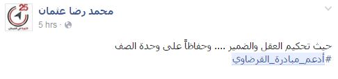 وطالب محمد رضا عثمان، بالموافقة على المبادرة حفاظًا على وحدة الصف: