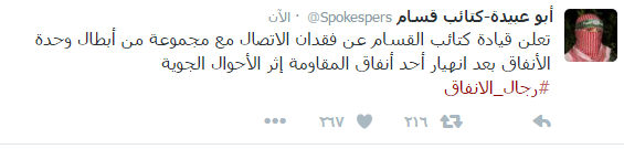 وبعد وقت من إطلاق الهاشتاق أعلنت قيادة كتائب القسام عن فقدان الاتصال مع مجموعة من المجاهدين إثر انهيار أحد الأنفاق نتيجة الأحوال الجوية.
