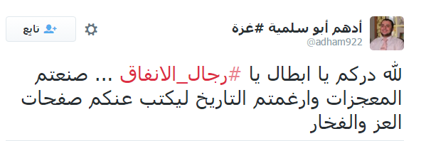 وامتدح المتحدث الرسمي باسم الهيئة الوطنية لكسر الحصار وإعادة الإعمار بغزة أدهم أبو سلمية رجال المقاومة قائلا : لله دركم يا ابطال يا رجال الانفاق صنعتم المعجزات وارغمتم التاريخ ليكتب عنكم صفحات العز والفخار، حسبما نشر على حسابه بموقع “تويتر”.