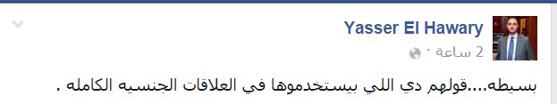 الناشط السياسي ياسر الهواري: “بسيطة قولهم دي اللي بيستخدموها في العلاقات الجنسية الكاملة”.