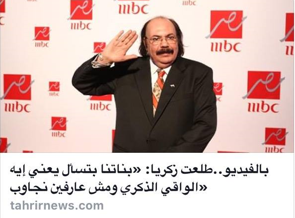 الكاتب مصطفى السلماوي: “بدل ما المدعو طلعت زكريا بيواصل سب شباب الثورة وبيتهمهم بقلة الأدب والسفالة وقله التربية، الأولى بيه يربي ابنه اللي اتهم بفعل فاضح وسكر وحشيش في الطريق العام… مع شوية الفرافير إياهم، جتكم القرف شوية زبالة”.