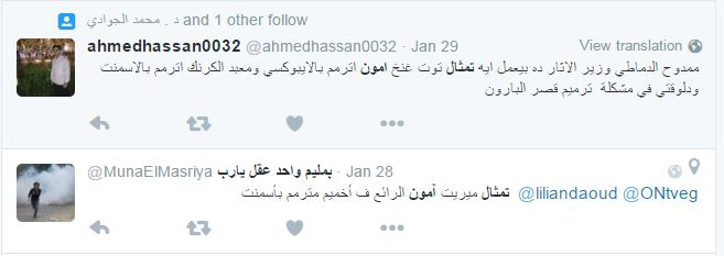 تداول مستخدمو مواقع التواصل الاجتماعي صورة لتمثال المعبود آمون في معبد الكرنك بمدينة الأقصر بقدم مشوهة، حيث قالوا إن المرممين التابعين لوزارة الآثار حاولوا استكمال الجزء الأسفل للتمثال إلا أنهم فشلوا وظهر التمثال بشكل مشوه يسئ للآثار المصرية وسمعة مصر السياحية.
