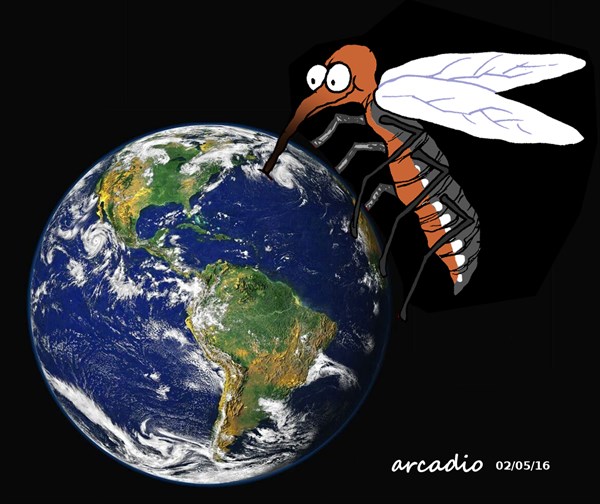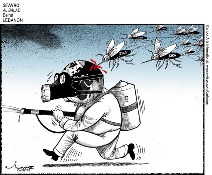 ونشر موقع “بولتيكال كارتونز” هذا الرسم عن انتشار فيروس زيكا في العالم: