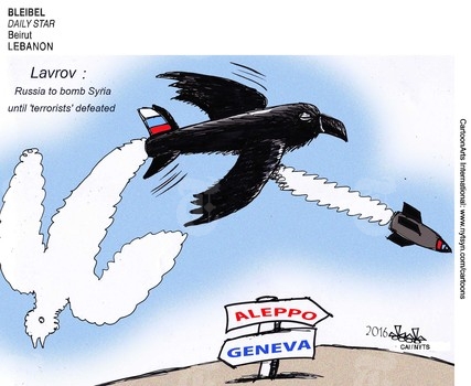 كاريكاتير.. الغارات الروسية تبيد آمال محادثات السلام في جنيف