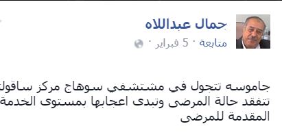 أحمد عبداللاه: “جاموسة تتجول في مستشفى سوهاج مركز ساقولته، تتفقد حالة المرضى وتبدي إعجابها بمستوى الخدمة المقدمة للمرضى”.
