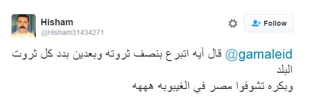 Hisham: قال إيه اتبرع بنصف ثروته وبعدين بدد كل ثروت البلد وبكره تشوفوا مصر في الغيبوبة