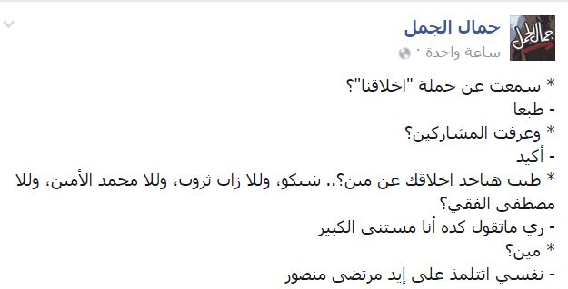 سخر الكاتب الصحفي جمال الجمل، من إطلاق حملة “أخلاقنا”، ومن بعض المشاركين فيها.