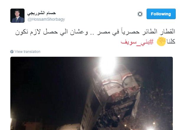 حسام الشوربجي: القطار الطائر حصريًا في مصر .. وعشان الي حصل لازم نكون كلنا #بني_سويف