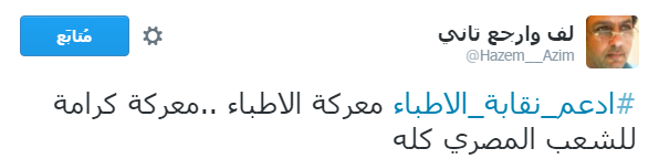 وطالب الناشط السياسي د. حازم عبد العظيم بدعم الأطباء، واصفا قضيتهم بمعركة الكرامة للشعب المصري.