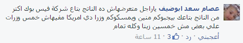 -عصام: “ياراجل متعرضهاش ده الناتج بتاع شركة فيس بوك اكتر من الناتج بتاعك، بيجبوكم منين ويمسكوكم وزرا! دي امريكا مفيهاش خمس وزرات علي بعض مش خمسين زينا وكله تمام”.