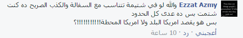 -ezzat: “والله لو في شتيمة تتناسب مع السفالة والكذب الصريح ده كنت شتمت بس ده عدى كل الحدود ، بس هو يقصد امريكا البلد ولا امريكا المحطة!”.