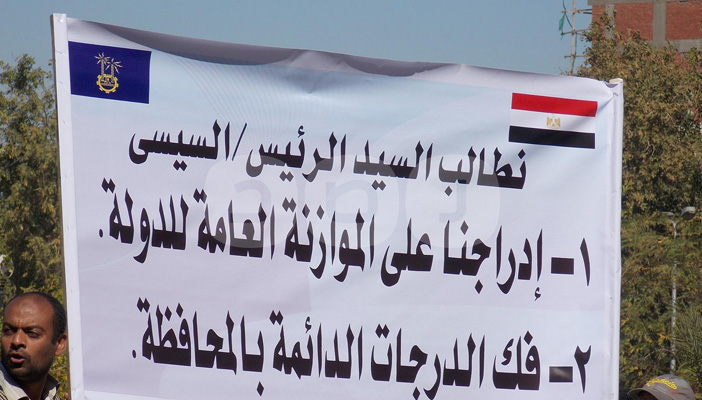 بالصور.. المؤقتون بالمجالس المحلية في أسوان يعتصمون أمام مبنى المحافظة