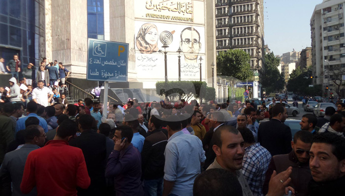 نقل حملة الماجستير والدكتوراه، وقفتهم من أمام مقر مجلس الوزراء إلى مقر نقابة الصحفيين؛ بعد تهديد الأمن بتفريقهم بالقوة إذا لم يفضوا المظاهرة وينصرفوا.