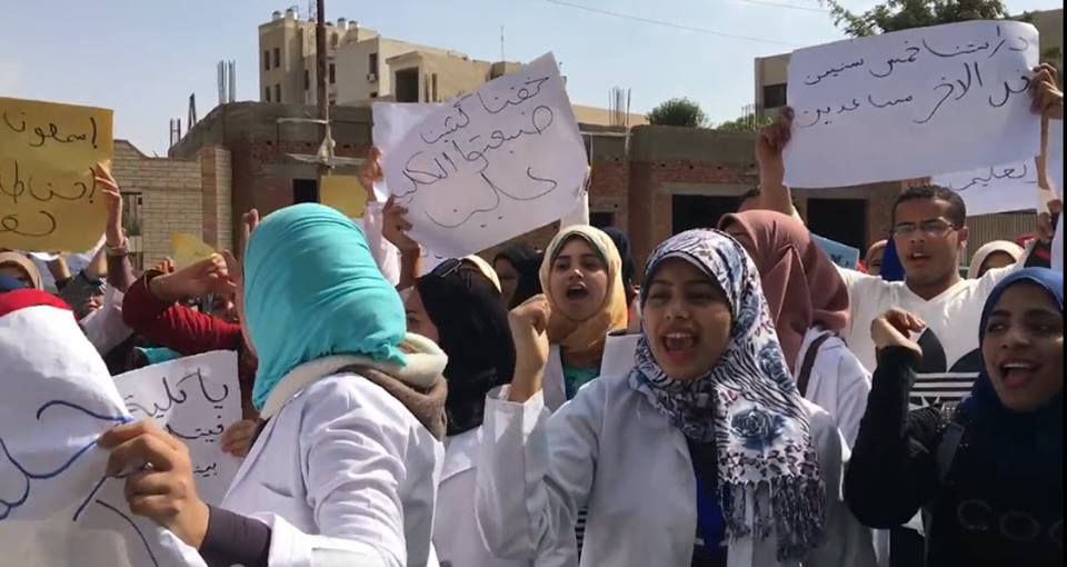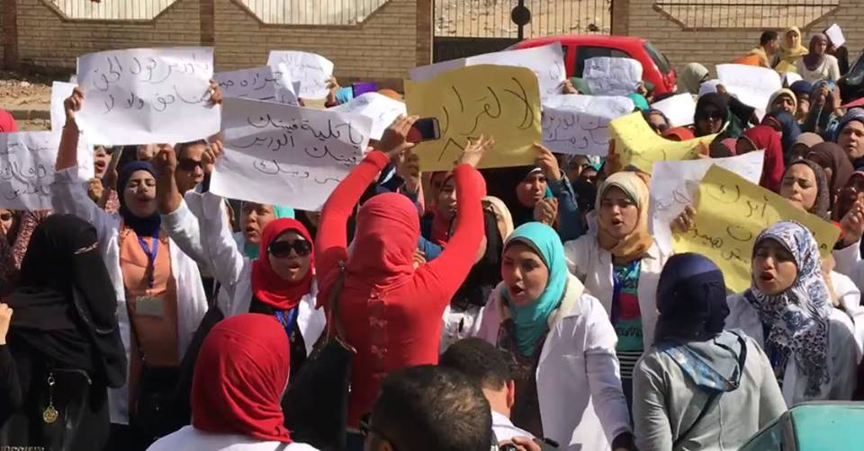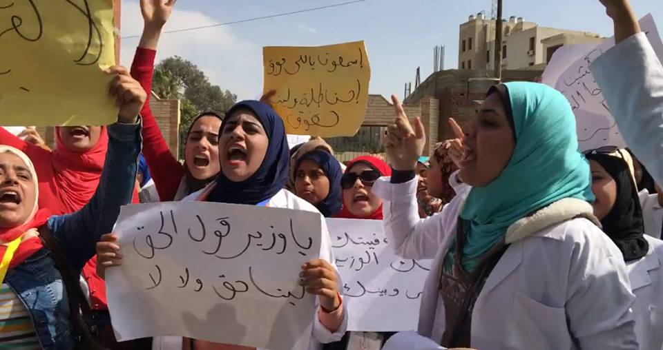 نظمت طالبات معهد التمريض بمحافظة الإسماعيلية، السبت، تظاهرة احتجاجية أمام مديرية الصحة بالمحافظة، رفضا لقرار أصدره وزير الصحة يمنعهن من الالتحاق بكليات التمريض وتعيينهن بعد التخرج “مساعد تمريض”.