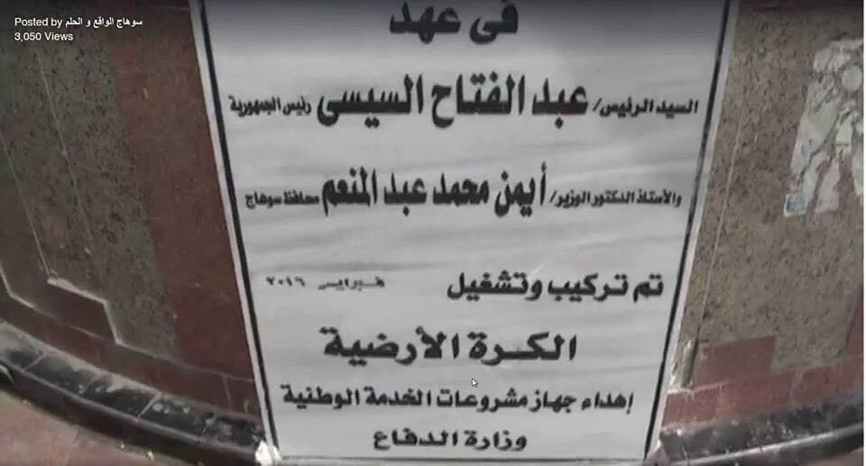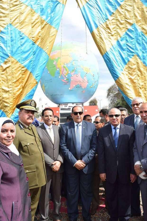 أهدى جهاز مشروعات الخدمة الوطنية التابع لوزارة الدفاع المصرية، مجسمًا ضخمًا للكرة الأرضية، في أحد ميادين محافظة سوهاج