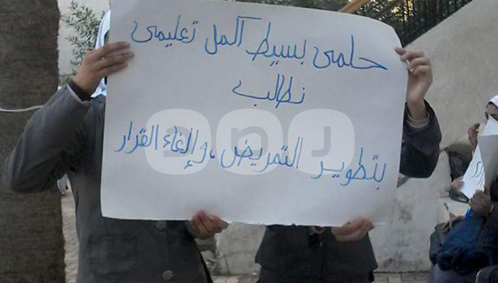 وهدد بعض المسؤولين الطالبات قائلا لهن “إن هذه الوقفة هي اختراق لقانون التظاهر وإذا لم يتم إنهاء الوقفة سيبلغون الشرطة لتتعامل معهن”.