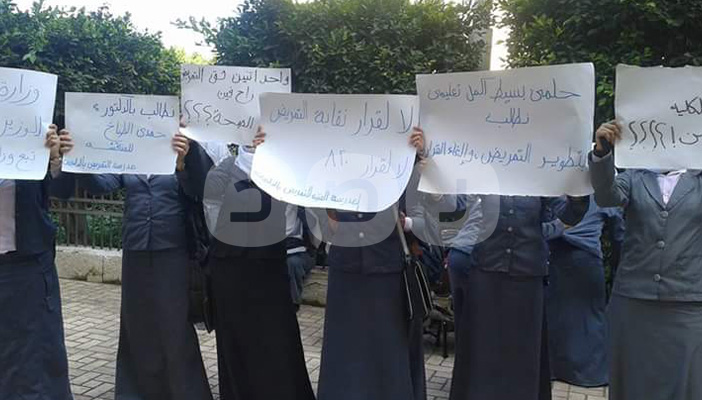 بالصور.. وقفة احتجاجية لطالبات التمريض بالدلنجات رفضا لقانون الوزارة