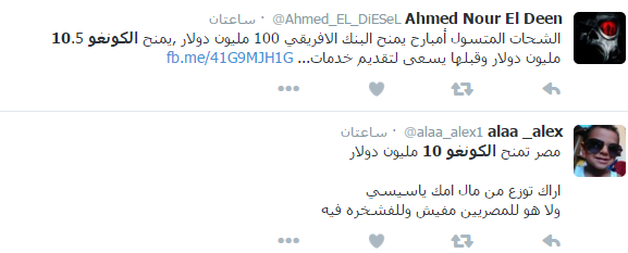 وتبلوت آراء مواقع التواصل الاجتماعي في التأكيد على فشل السيسي والحكومة في إدارة البلاد، وسط تعجب من ادعاء عبدالفتاح السيسي عدم قدرة الحكومة على دعم المياه في حين أنه يسارع بإعطاء هذا الملبغ الضخم لدولة الكونغو.