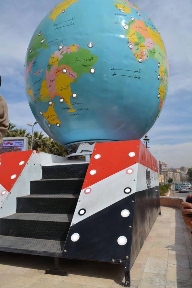 أثار إنشاء المُجسّم الكُروي الذي نفذه جهاز مشروعات الخدمة الوطنية التابع للجيش حفيظة وانتقادات أوساط الرأي العام المحلي والجماهيري بسوهاج، وامتدت موجة الانتقادات إلى الصحف العالمية، وذلك بسبب ما ورد في المجسم من أخطاء مطبعية فادحة في خريطة الكُرة الأرضية من حيث اتجاهات وأماكن ومواضع الدول والقارات والمحيطات، إضافة إلى تزايد مساحات الدول عن حجمها الطبيعي كمصر والسعودية، وإظهار أن قارة أميركا اللاتينية متقلصة تماما.