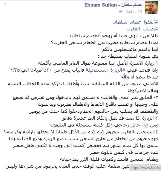 عددت زوجة سلطان -عبر صفحة عصام سلطان على “فيس بوك”- الأسباب والتي منها: