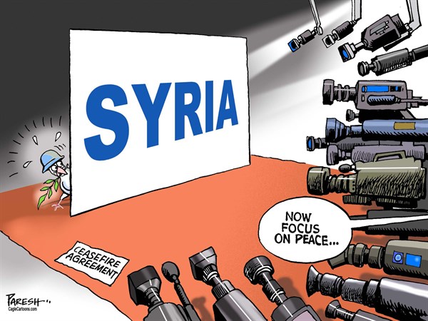 ونشر موقع “بولتيكال كارتونز” هذا الرسم ساخرا من الهدنة السورية: