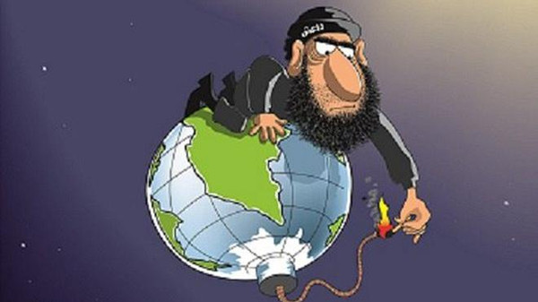 فقدم موقع “العربية” هذا الرسم ساخرا مما وصفه بإرهاب تنظيم الدولة للعالم: