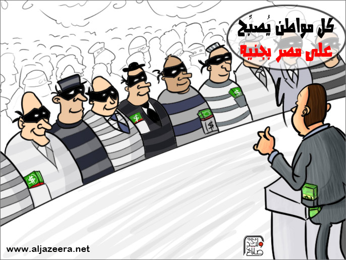 وعن حملة “صبح على مصر بجنيه” نشر موقع “الجزيرة دوت نت” هذا الرسم الساخر: