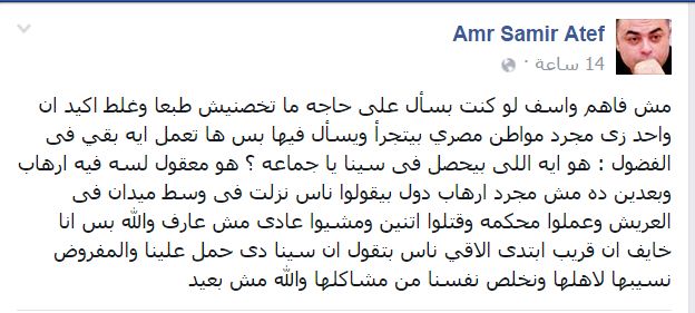 عمرو سمير عاطف: هو إيه اللي بيحصل في سينا يا جماعة؟