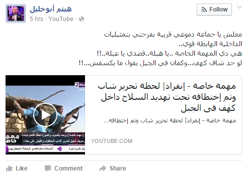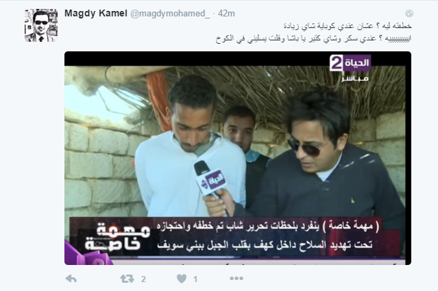 شهدت الساحات الاجتماعية سخرية واسعة من فيديو مذاع على قناة “الحياة 2″، يُظهر مشاركة مراسل برنامج “مهمة خاصة”، في تغطية عملية خاصة للشرطة، ترمي إلى إنقاذ رجل مخطوف ببني سويف والقبض على خاطفه بطريقة استعراضية مفتعلة.