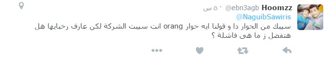 – “Hoomz“: “سيبك من الحوار ده وقولنا إيه حوار “أورانج” إنت سبت الشركة لكن عارف خباياها.. هل هتفضل زي ما هي فاشلة؟”.