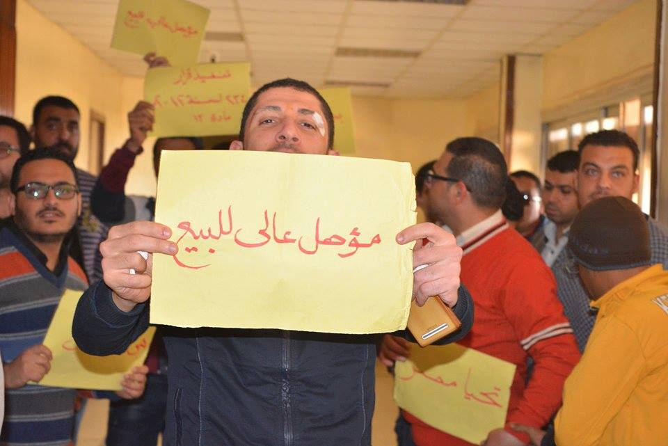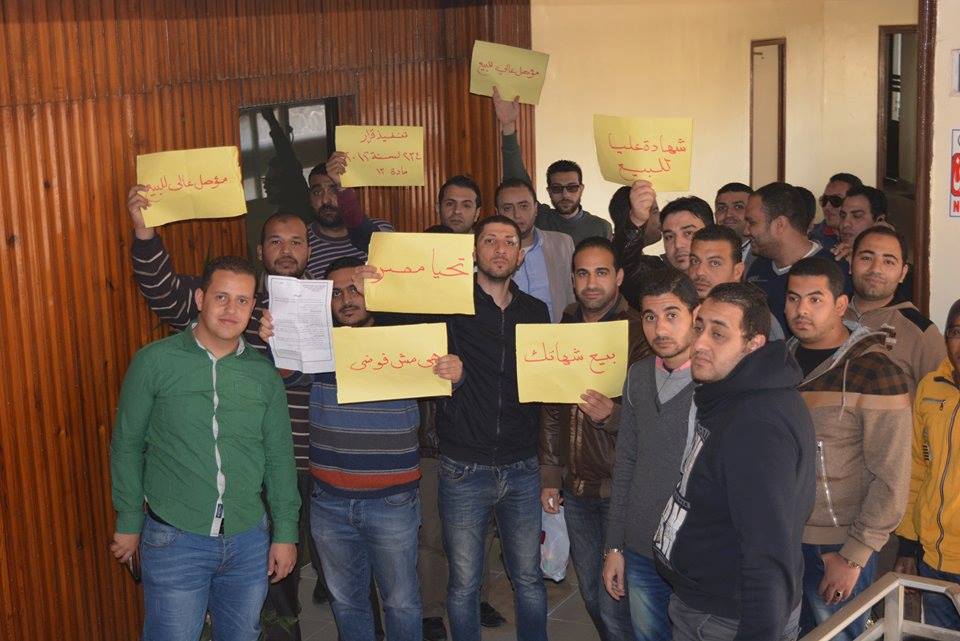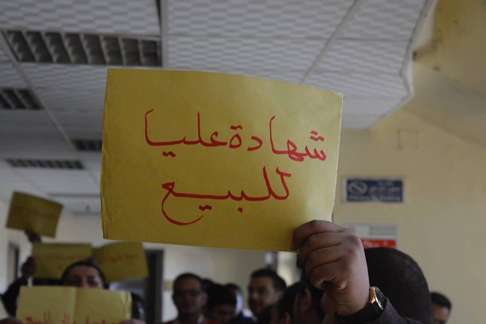 ورفع العاملون لافتات كُتب عليها “مؤهل عال للبيع، شهادة للبيع، هي مش فوضى”، مطالبين مجلس الإدارة بتثبيت العمالة المؤقتة.