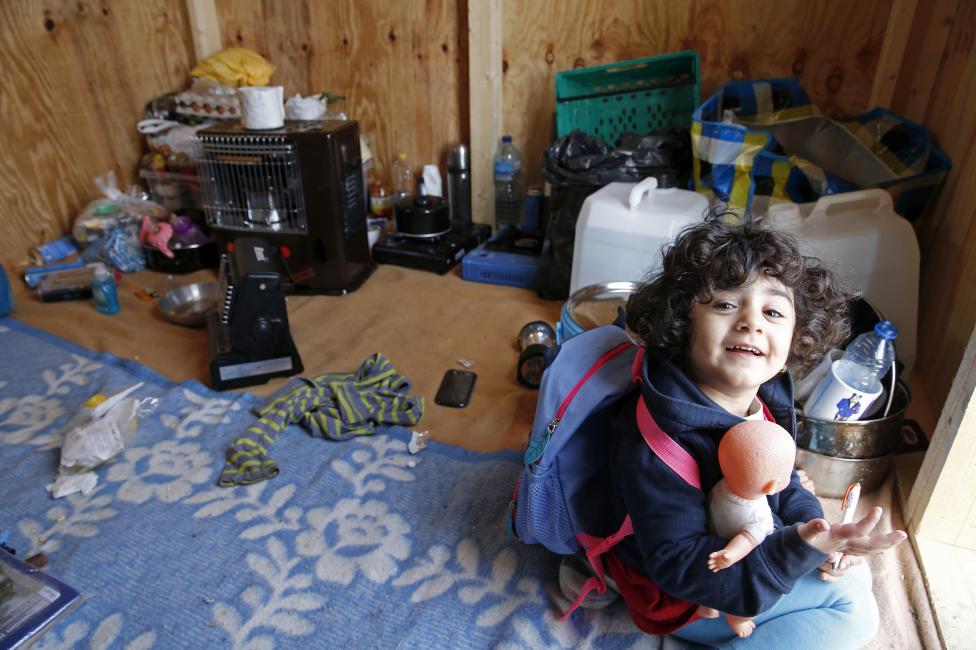 3- تينا طفلة كردية من العراق تبلغ من العمر 3 سنوات، تعيش في مخيم خشبي بالقرب من شمال فرنسا، تلبس حقيبة المدرسة، لكنها لن تذهب إليها، هي فقط تتخيل كيف تكون حياتها في بلد آمن.