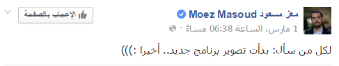 وشاركه في ذلك معز مسعود، الذي وجه رسالة لمتابعيه أنه بدأ تصوير برنامج جديد.