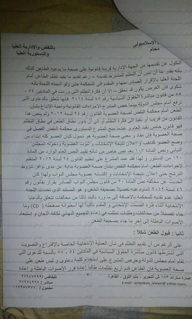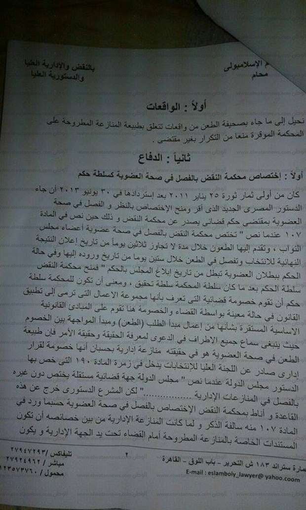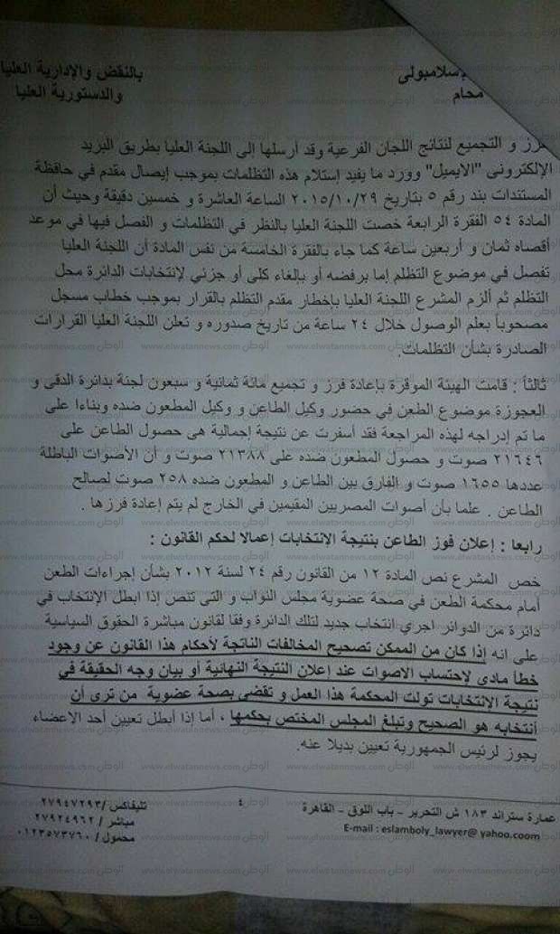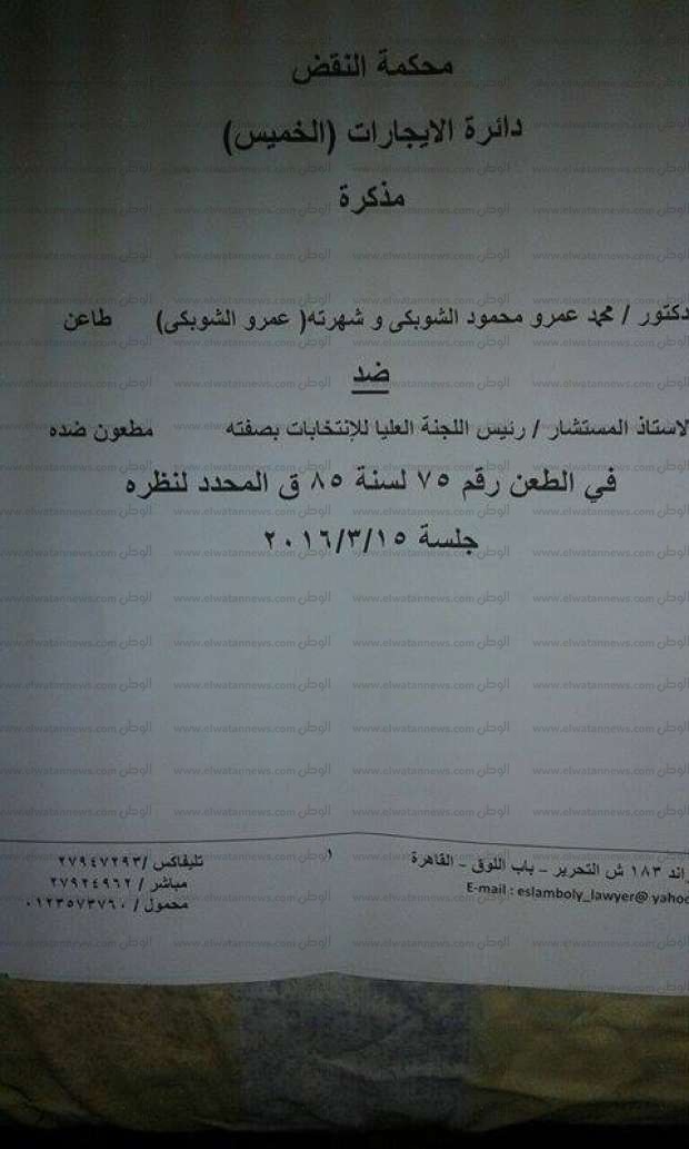 كشف الفقيه الدستوري عصام الإسلامبولي، في مذكرة، تقدم بها إلى محكمة النقض المصرية، أحقية حصول موكله عمرو الشبكي على مقعد دائرة الدقي في الانتخابات البرلمانية الأخيرة، والذي حصل عليه أحمد مرتضى منصور.