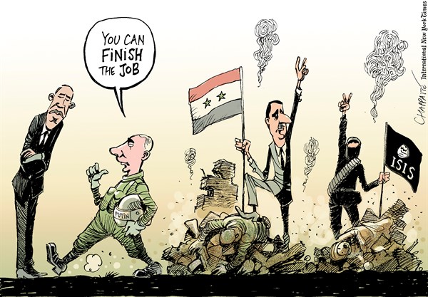 أما بالنسبة للشأن السوري عقب انسحاب روسيا فنشرت صحيفة “نيويورك تايمز” تلك الرسوم الساخرة:
