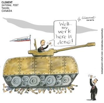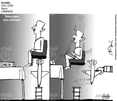 ونشر موقع “بولتيكال كارتونز” هذا الرسم عن انتهاء المهمة الروسية في سوريا: